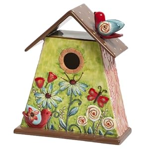 Bring a spot of color and charm to your home and garden with a decorative table top birdhouse from Evergreen's Field of Flowers collection. Ceramic birdhouse is highly decorated; 11-inches tall and 8.5-inches long. Evergreen enhances life by bringing you exceptional home and garden d�cor items known for their quality, beauty and functionality.